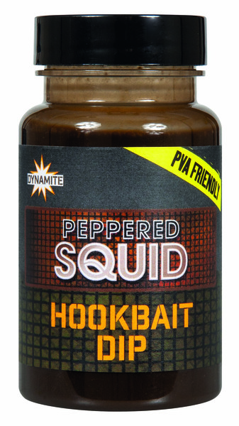 De Peppered Squid Dip van Dynamite Baits is een geweldige dip om je haakaas extra attractief te maken. Deze dip bevat onder andere vloeibare inktvis, octopus, zwarte peper, essentiële oliën, leverhydrolysaat en gemengde visolie. De dip trekt goed in diverse soorten haakaas. Perfect voor de visserij op karper!