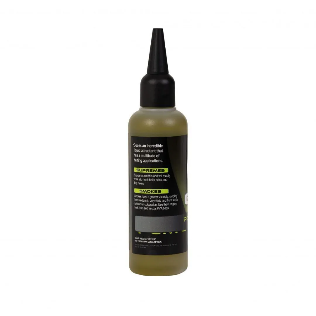 De Supreme-variant is dunner van structuur, waardoor hij snel door je aas trekt en zich optimaal verspreidt in het water. Ideaal voor het soaken van boilies, pellets, hookbaits of PVA-mixen. Zodra de Goo in contact komt met water ontstaat er een visueel aantrekkelijke wolk die karpers direct triggert.