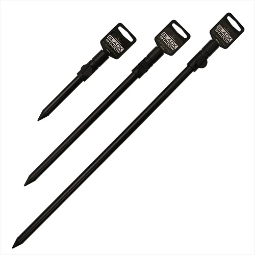 De banksticks zijn vervaardigd uit hoogwaardig materiaal en afgewerkt met een matte zwarte Black Shadow coating. Dit zorgt niet alleen voor een moderne, onopvallende uitstraling, maar ook voor extra bescherming tegen slijtage en weersinvloeden. Dankzij het verstelbare ontwerp stel je eenvoudig de juiste hoogte in, terwijl de scherpe punt het mogelijk maakt om ze moeiteloos in zowel zachte als hardere bodems te plaatsen.